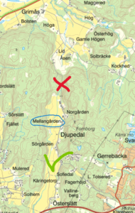 VIKTIGT: När du kör till gården, passa på att vägen du väljer är att köra norrut längs Djupedalsvägen. Vissa GPS:er föreslår att man kan köra söderut från Grimås till Djupedal, men den vägen är en trång grusväg som är stängd med bom, så man kommer inte fram den vägen.